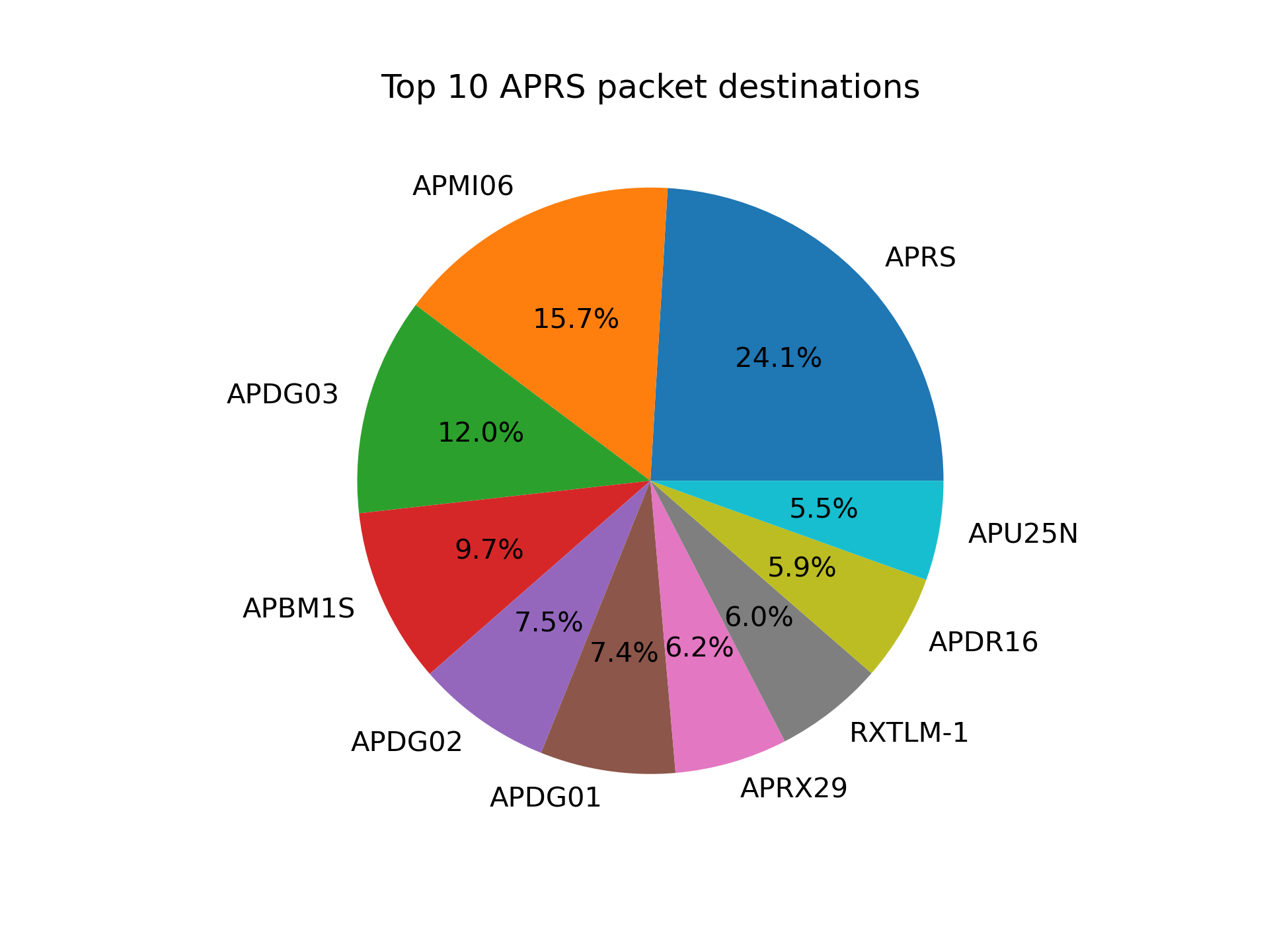 Internet users on the other hand seem to be just filling the network with data. Position reports don’t make a ton of sense, but this traffic is probably a lot of people who (like me) use cron jobs to display their QTH and possibly local repeaters on the APRS maps. This is probably a bit less of the intended use of APRS.