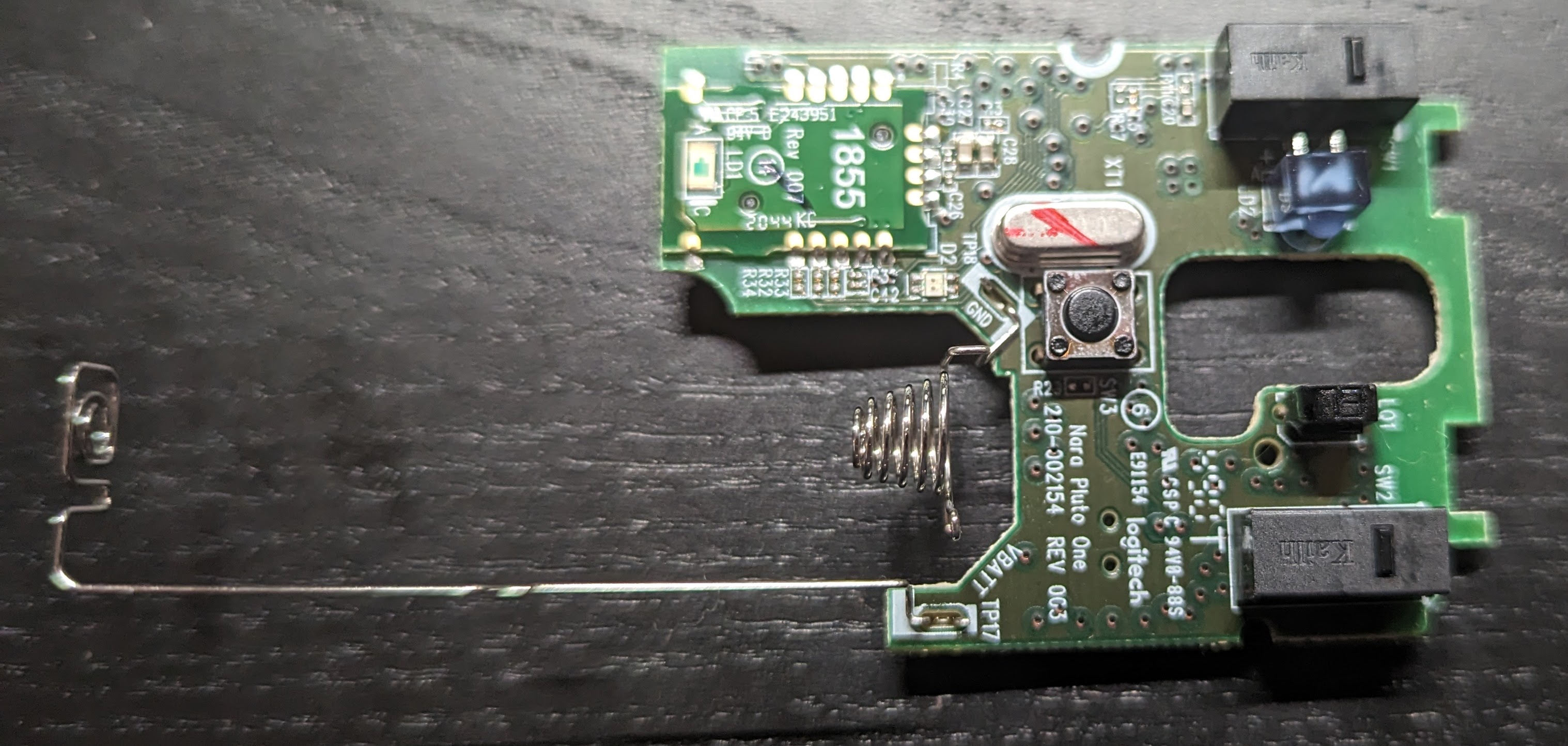 After de-soldering the existing button, and replacing it with a spare, I was left with a mouse circuit that looked no different than when I started.